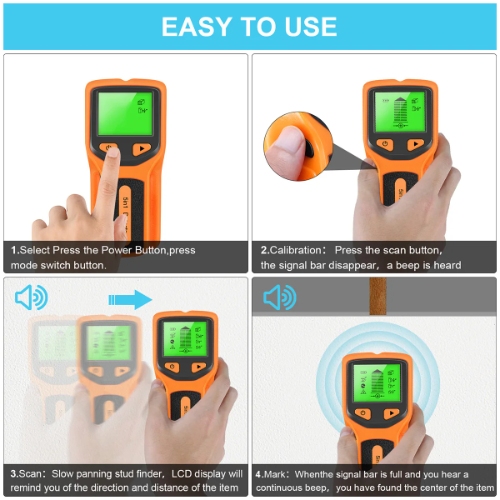 4,Using metal detect function to find hiddenmetal pipe, rivet or fixture in the wall